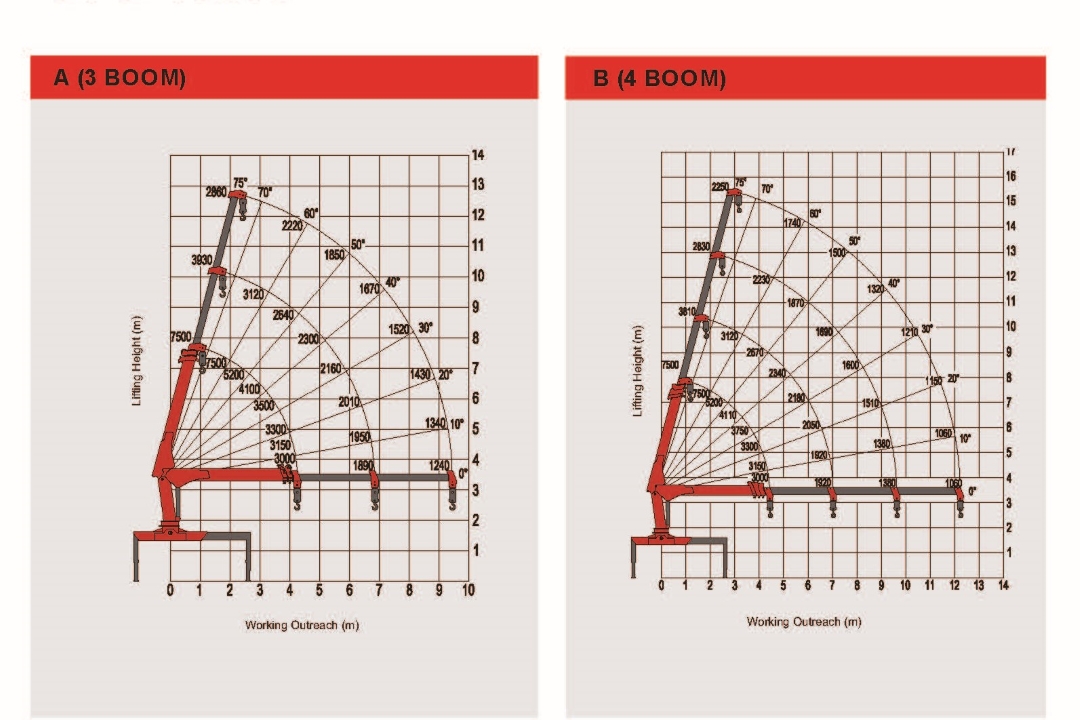 | Góc Nâng Của Cần | 0 ~ 75° | 0 ~ 75° | Phạm vi góc mà cần cẩu có thể nâng lên từ vị trí nằm ngang (0°) đến vị trí cao nhất (75°). |