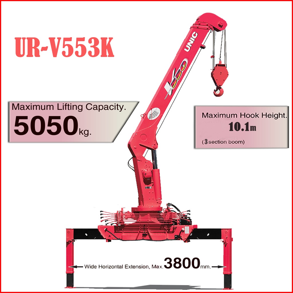 Cẩu Unic UR-V553: Tải trọng nâng 5.050 kg – 3 đoạn cần: