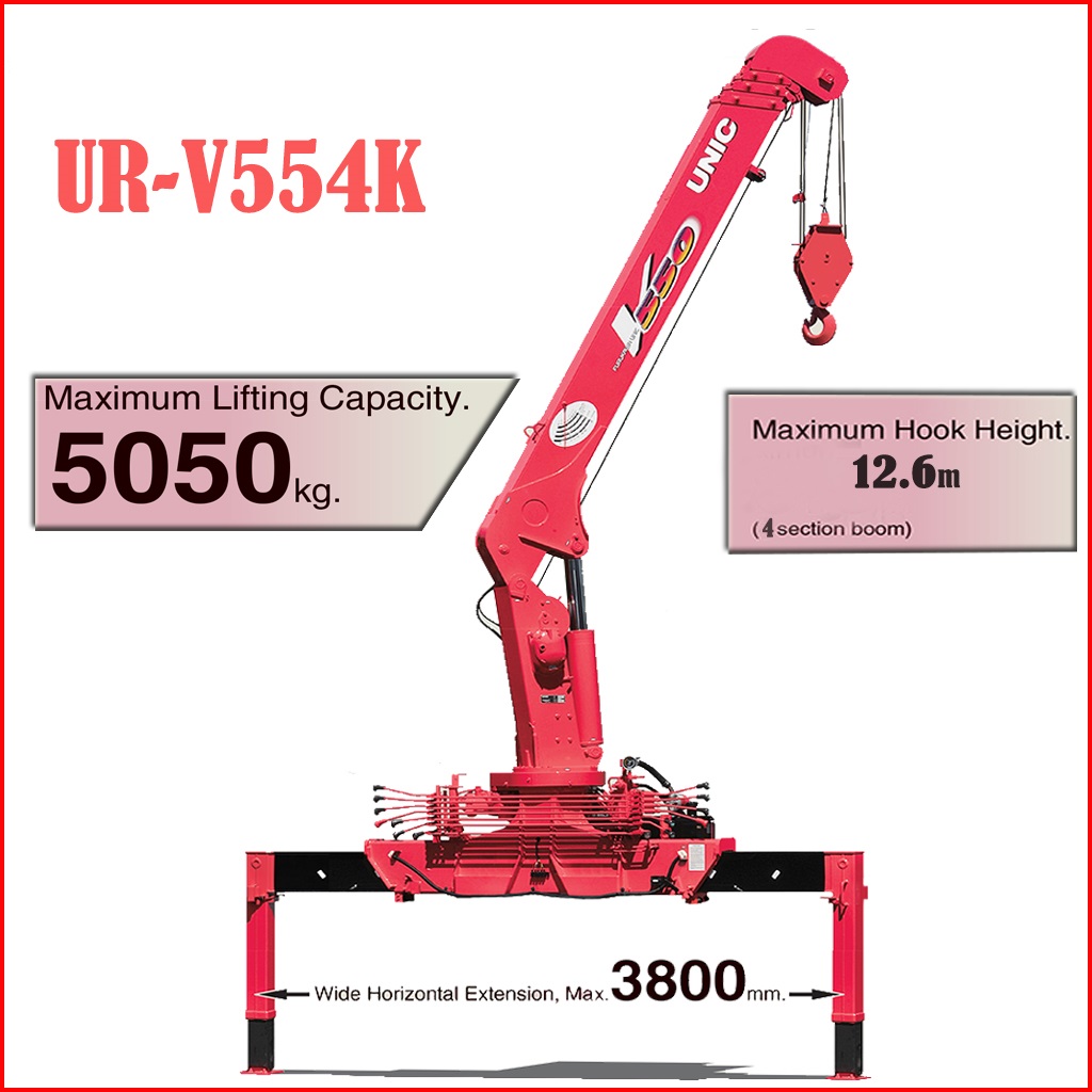 Cẩu Unic UR-V554: Tải trọng nâng 5.050 kg – 4 đoạn cần: