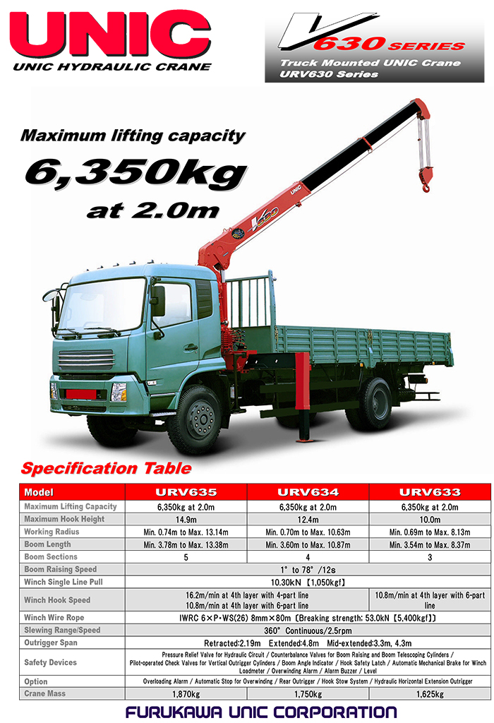 Cẩu Unic 7 tấn có Series UR-A1200 là dòng cẩu tầm trung. Được hãng sản xuất để lắp đặt trên xe tải từ 24 tấn đến 32 tấn. Dùng hỗ trợ con người trong việc nâng hạ và vận chuyển hàng hóa.