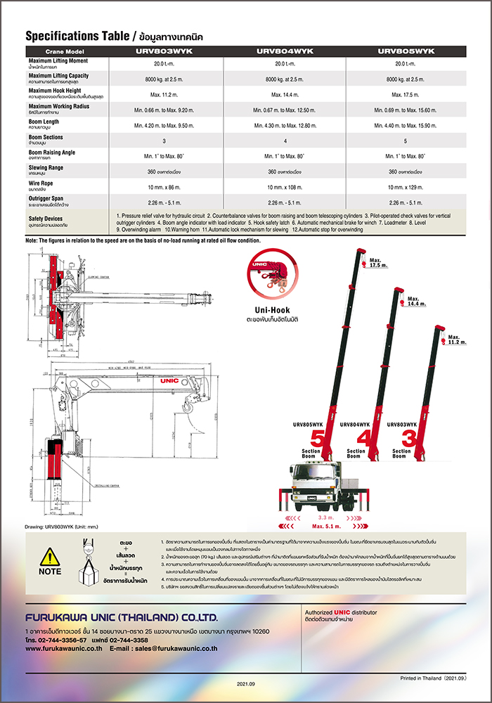 THÔNG SỐ KỸ THUẬT CẨU UNIC 8 TẤN SERIES UR-V800