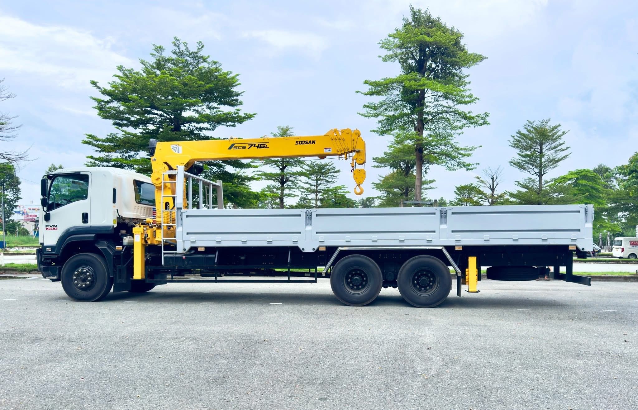 Xe tải gắn cẩu 15 tấn Isuzu FVM lắp cẩu Soosan 7 tấn (SCS-746L) là giải pháp mạnh mẽ, linh hoạt và tiết kiệm cho các công trình cần kết hợp vận chuyển và nâng hạ. Với nền xe Isuzu FVM bền bỉ, cẩu Soosan mạnh mẽ, cùng hệ thủy lực chuyên dụng, dòng xe này mang lại lợi ích rõ rệt về hiệu suất, chi phí và an toàn.