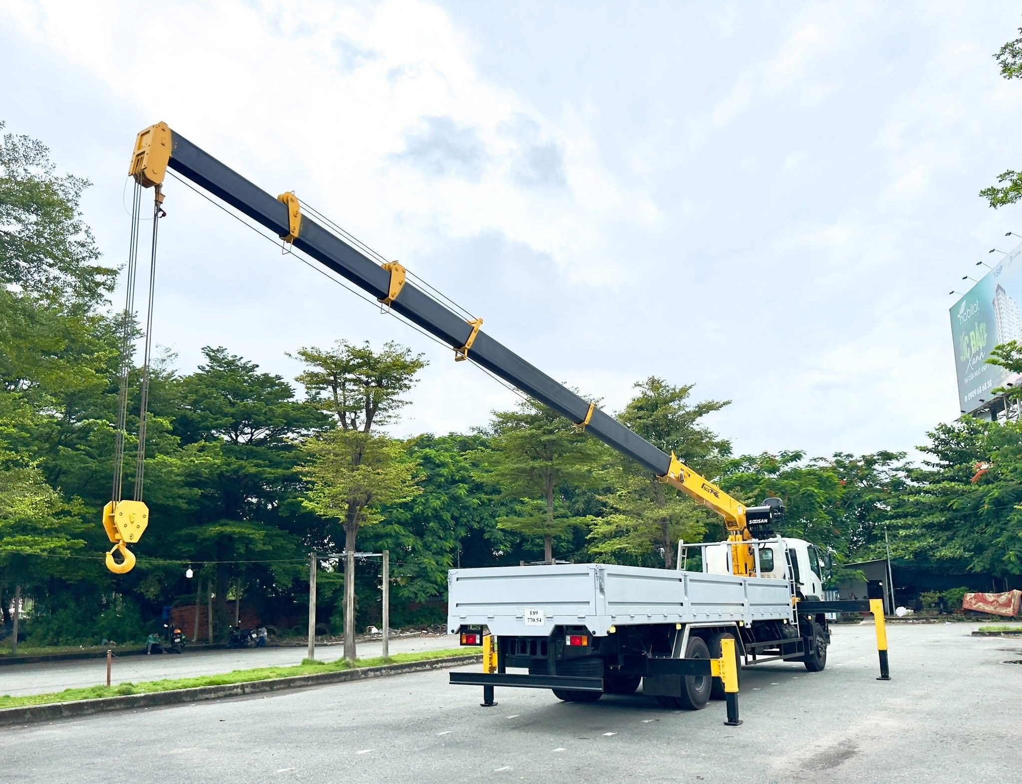 Lực nâng mạnh và tầm với dài — cẩu 7 tấn với cần đa đoạn giúp làm việc linh hoạt ở nhiều vị trí.