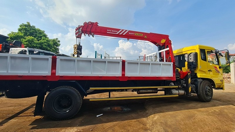 Xe tải Dongfeng 180 lắp cẩu Sany Palfinger 7 tấn 4 đoạn SPS 16000 được phân phối và bảo hành trên toàn quốc. Xe Dongfeng Hoàng Huy được công ty ô tô Hoàng Huy nhập khẩu nguyên chiếc về Việt Nam. Cẩu Palffinger được MIHACO nhập khẩu nguyên chiếc từ tập đoàn Sany Palffinger Trung Quốc. Sau đó được thiết kế đóng mới và hoàn thiện thành xe ô tô tải gắn cẩu.