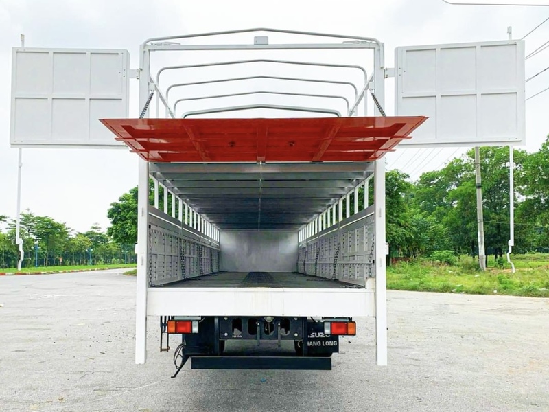 Xe tải 8 tấn Isuzu FVR 900 thùng chở xe máy 2 tầng bửng nâng được phân phối và bảo hành toàn quốc. Xe tải Isuzu FVR 900 8 tấn chở xe máy là dòng xe tải chuyên dụng. Được thiết kế dạng khung mui phủ bạt với 2 tầng, đằng sau có hệ thống bửng nâng hạ hàng. Để việc xếp dỡ, vận chuyển xe mô tơ, xe máy một cách nhanh chóng, an toàn và hiệu quả. Xe được trang bị động cơ mạnh mẽ, khung gầm chắc chắn và thùng xe rộng rãi. Tất cả nhằm giúp đáp ứng nhu cầu vận chuyển đa dạng của khách hàng.